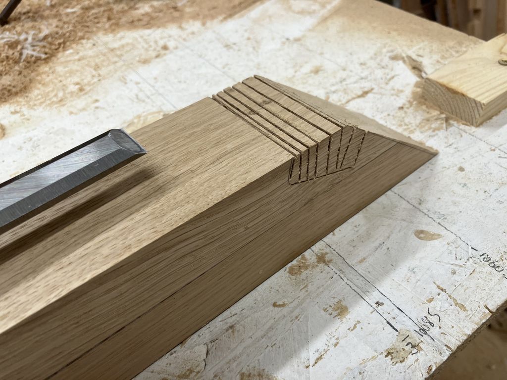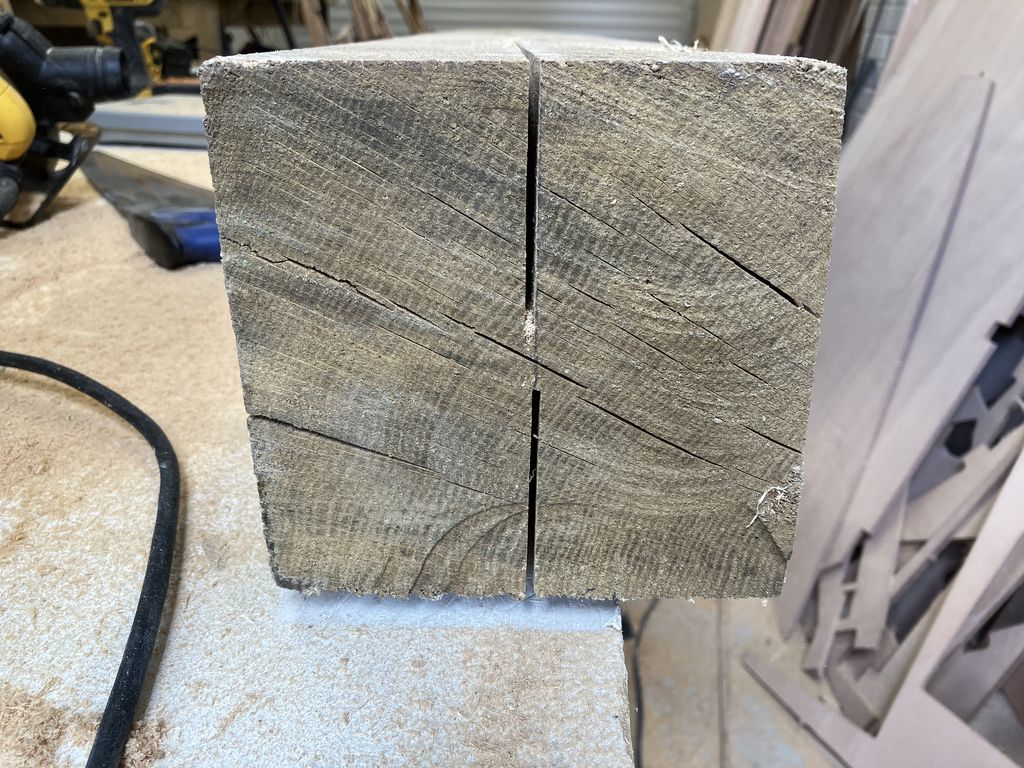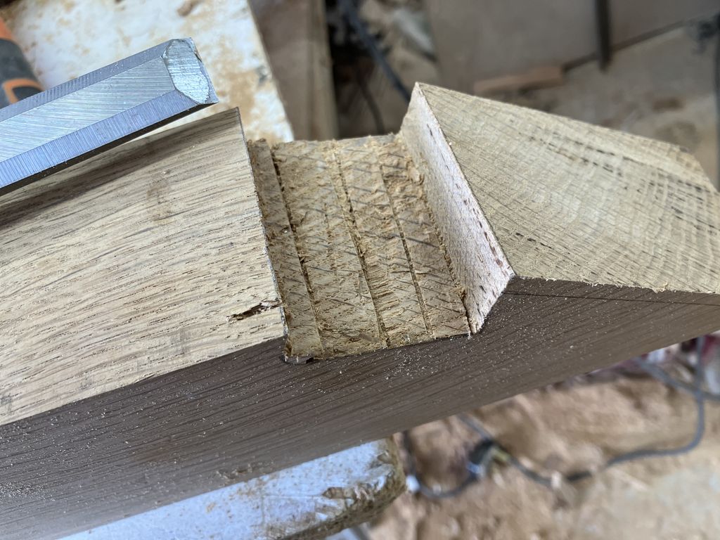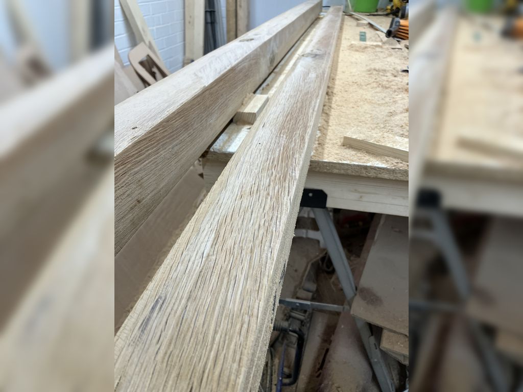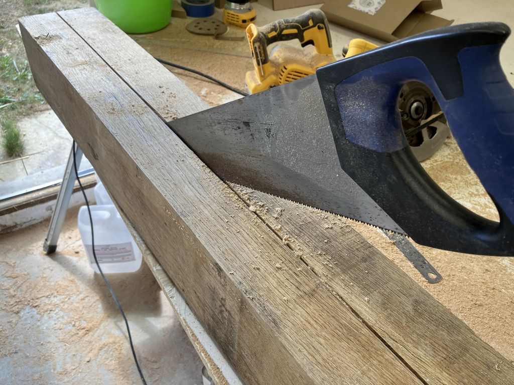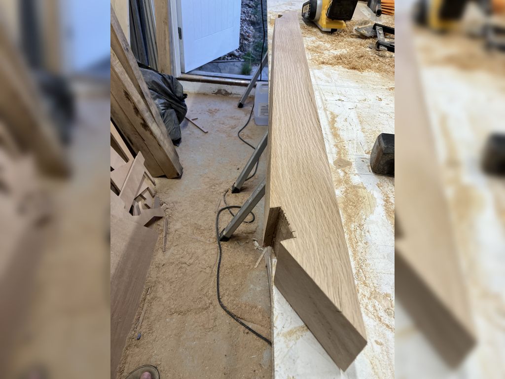 I picked up a couple of oak beams from Romsey Reclamation - one 8'x6"x6" one for £20/ft and 8½'x4"x2" for £10/ft. Total was £288 inc. VAT. These were alledgedly air-dried although I'm not convinced that they had been drying for the 10 years that Romsey suggested - the centre of the beams were certainly not as dry as the outside...
