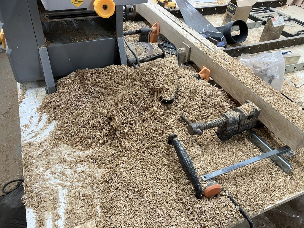 I also picked up a used Titan bench planer/thicknesser. Most of the planing I could do with my hand plane but the thicknesser made light work of the mast bearer, which would have taken quite a while by hand. It does have a chipped blade but that doesn't matter too much - the bit that was left after thicknessing easily sanded off.