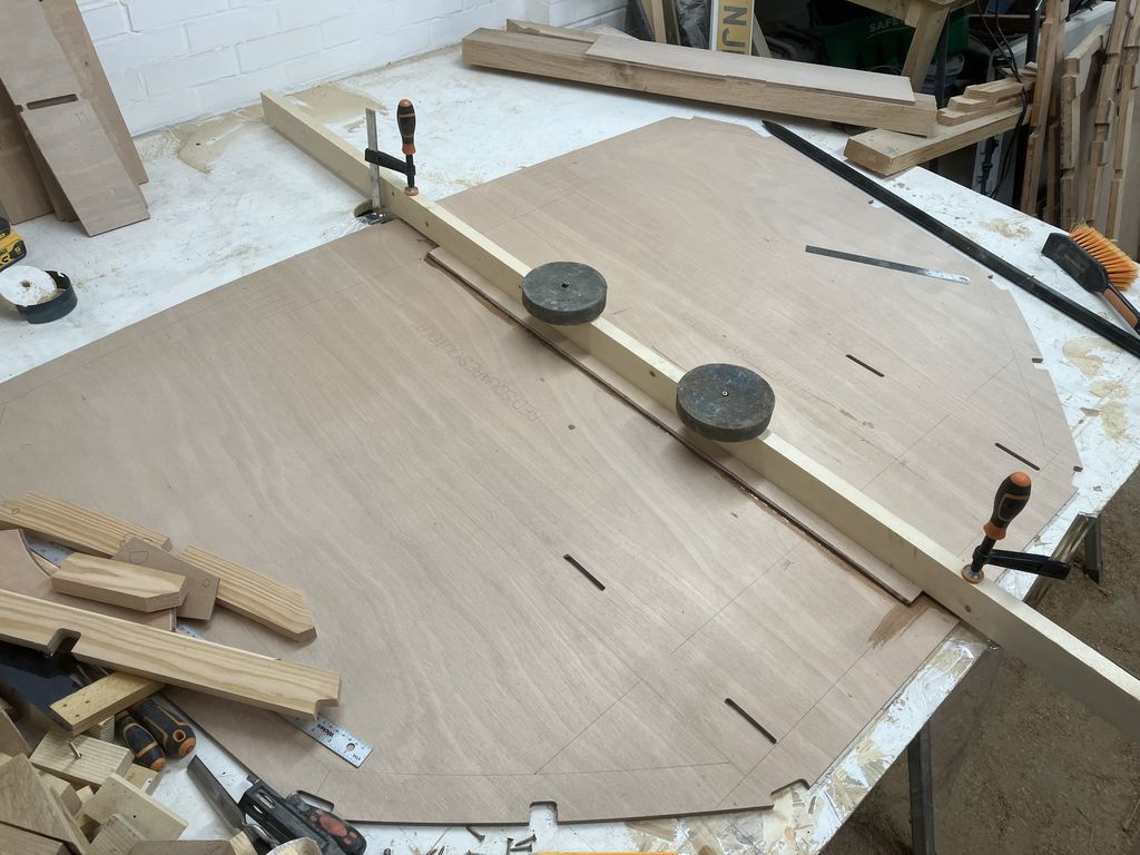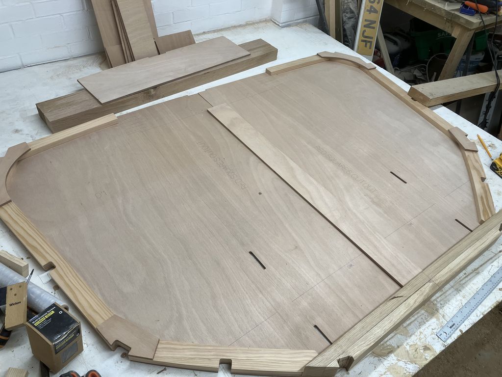 This is the big one that I've been leaving until last. Frame D1 (also referred to as D') is the watertight bulkhead that separates the main cabin from the forward cabin and it also carries the structure that transfers the downward force of the mast through the hull to the keel. The CNC kit contains the usual plywood and framing parts but doesn't include the larger solid wood parts that make up the mast support. I thought I had this all worked out and priced up sufficient oak but when I re-read a builder's group post i realised that it's only the keel timbers that need to be oak - the upper part of the mast support structure doesn't need to be oak. Dan, Jim and Joachim all used oak, Pete used douglas fir, and most other blogs don't document what they used. Douglas Fir is around 530kg/m³ and oak is about 720kg/m³, which makes douglas fir a better choice for a racing boat however as most boats have gone with oak that does seem to be the sensible choice, so that's what I chose.