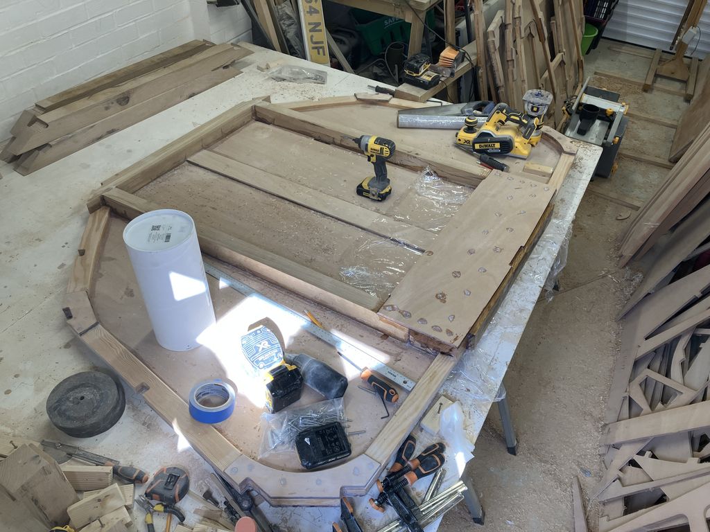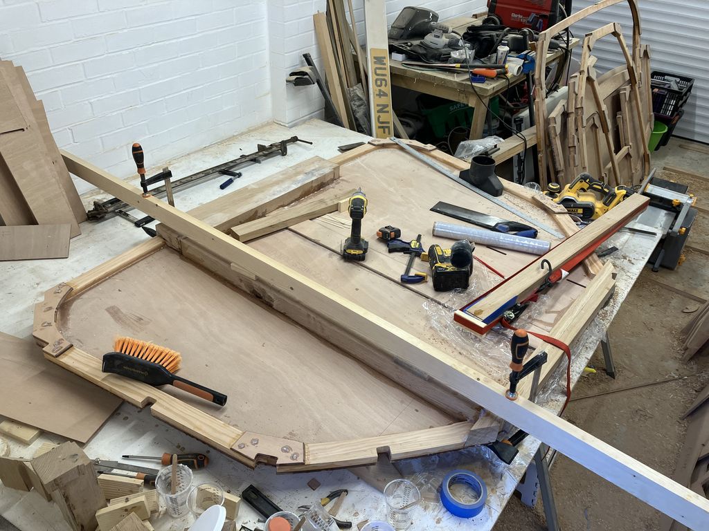 Once I had all the parts down to size it wasn't too different to the other frames - wet out, bond, screw, coat.